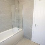 A good-sized family bathroom with fully tiled walls and floor. It comes complete with wash basin, soft close low-level WC, bath, shower screen, shower and extractor fan. There are spotlights to the ceiling, a towel radiator and a window overlooking the front elevation.