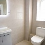The ensuite is fully tiled (floor and walls) and has a contemporary shower, soft close low-level WC, sink, towel radiator, electric shaving point and extractor fan.