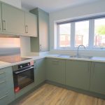 A half-glazed door leads you into the modern kitchen/ diner which is fitted with contemporary base and wall units giving you plenty of storage. All kitchen cupboards and draws have soft close action. A washing machine space is provided within the kitchen with water and waste connections ready.