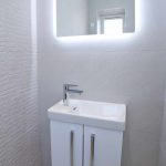 Accessed from the entrance hall with a WC with soft close seat, extractor fan, sink and towel radiator. The floor is laid with luxury vinyl flooring.
