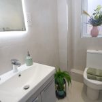 Accessed from the entrance hall with a WC with soft close seat, extractor fan, sink and towel radiator. The floor is laid with luxury vinyl flooring and an obscure window overlooks the front elevation.
