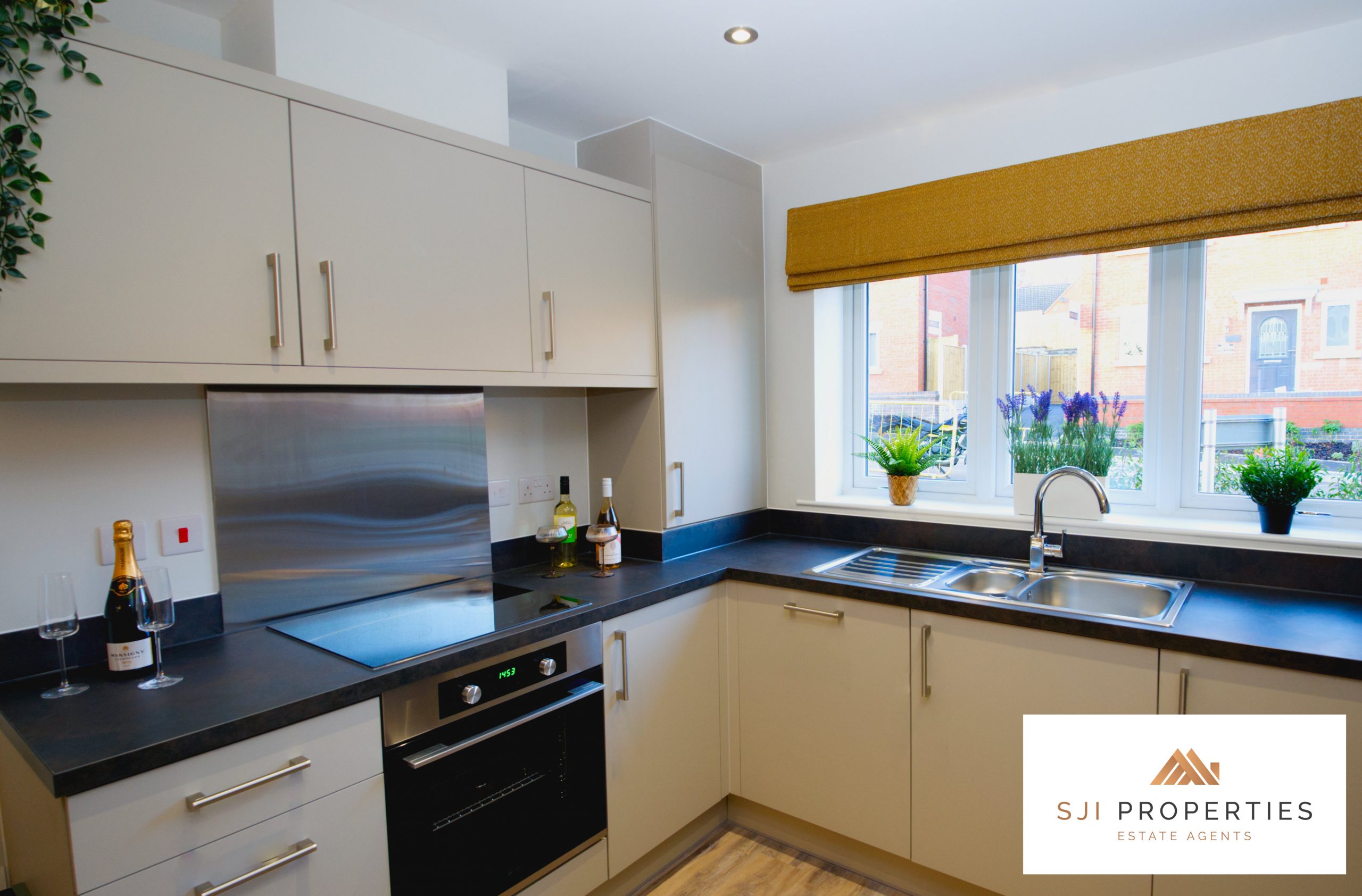 A half-glazed door leads you into the modern kitchen/ diner which is fitted with contemporary base and wall units giving you plenty of storage. All kitchen cupboards and drawers have soft close action. A washing machine space is provided within the kitchen with water and waste connections ready.