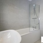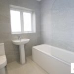 A good-sized family bathroom with fully tiled walls and floor. Complete with wash basin, low level soft close WC, bath, shower screen, shower and extractor fan. There is a window overlooking the rear, spotlights to the ceiling, and a towel radiator.