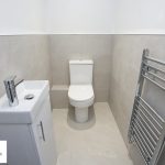 Accessed from the entrance hall with a WC with soft close seat, sink, extractor fan and towel radiator. The floor is laid with luxury vinyl flooring.