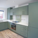 A half-glazed door leads you into the modern kitchen/ diner which is fitted with contemporary base and wall units giving you plenty of storage. All kitchen cupboards and drawers have soft close action. A washing machine space is provided within the kitchen with water and waste connections ready.